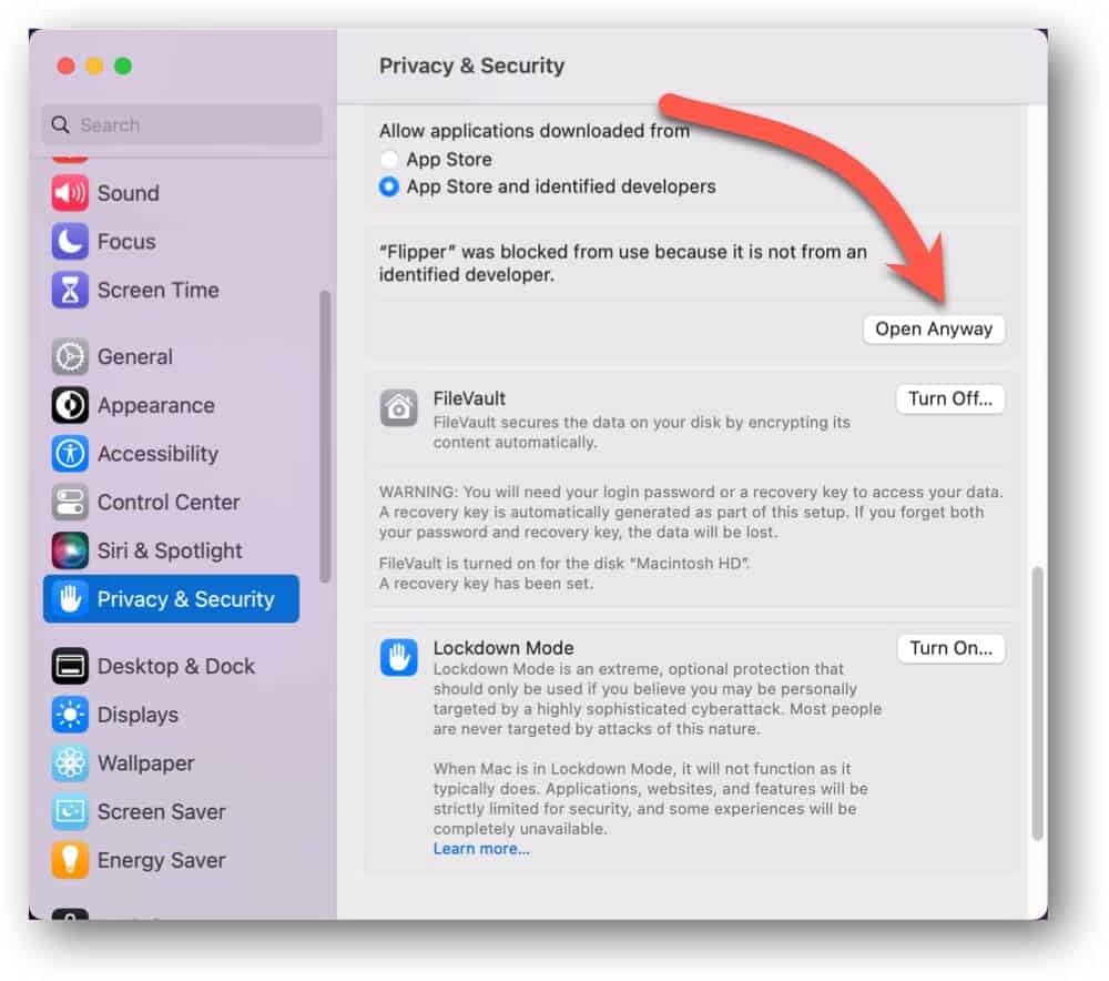 Step 2: Click Allow Anyway, then verify your identity and you're done
